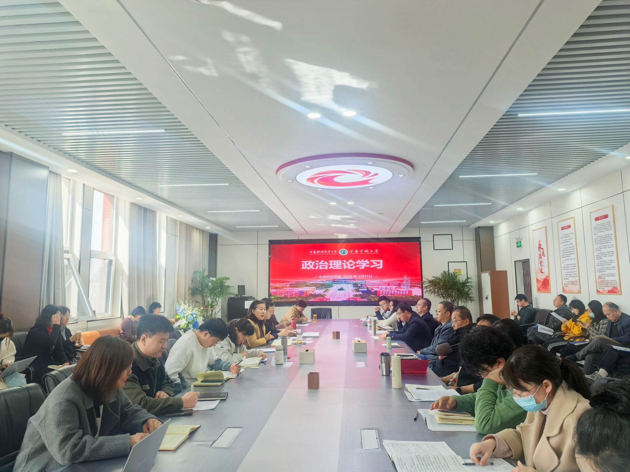 3月31日下午,伟德国际1946源于英国在B405会议室召开全体教职工政治理论学习会议。全院教职工参会,会议由公司党总支书记韩海燕主持。