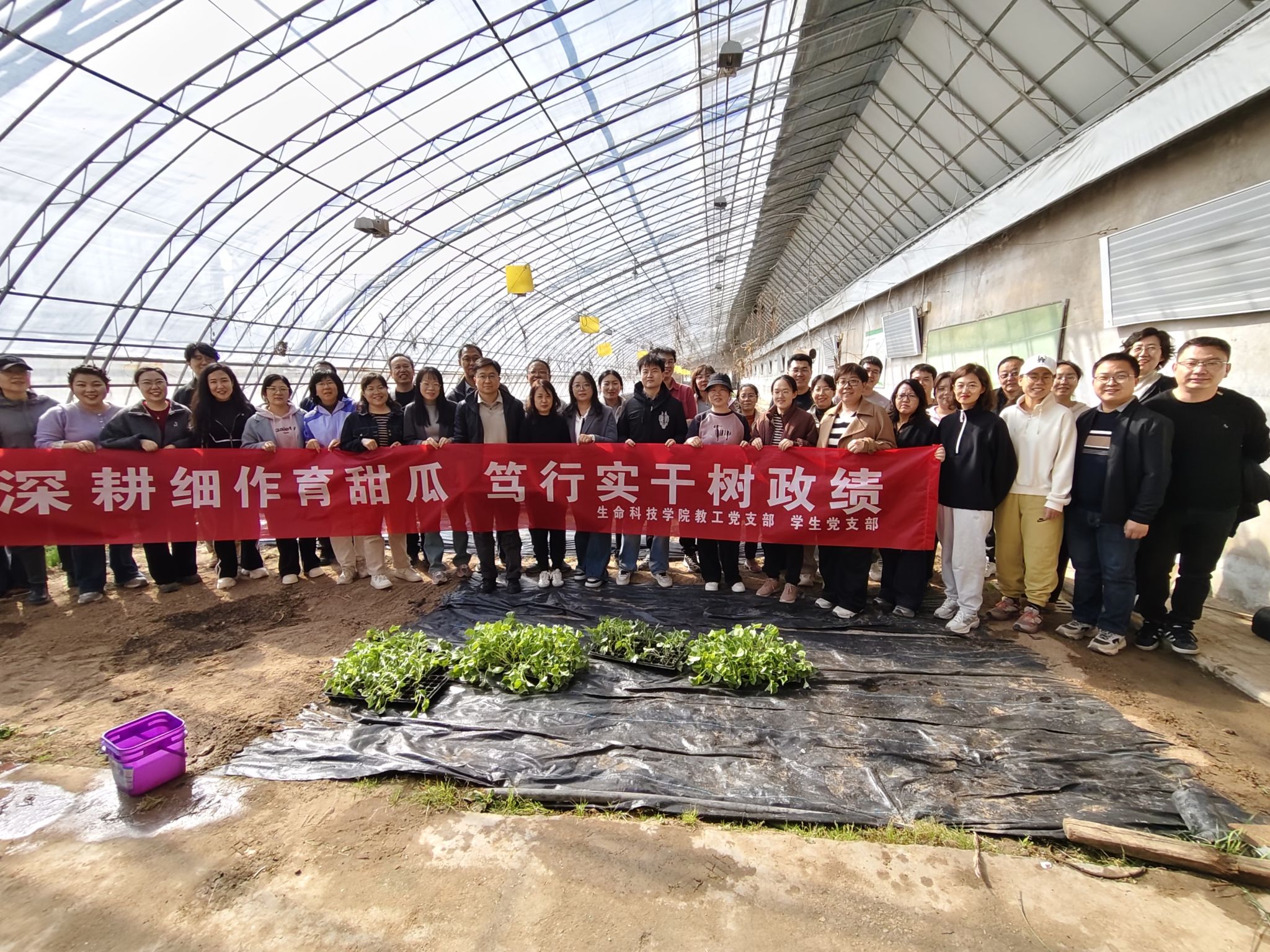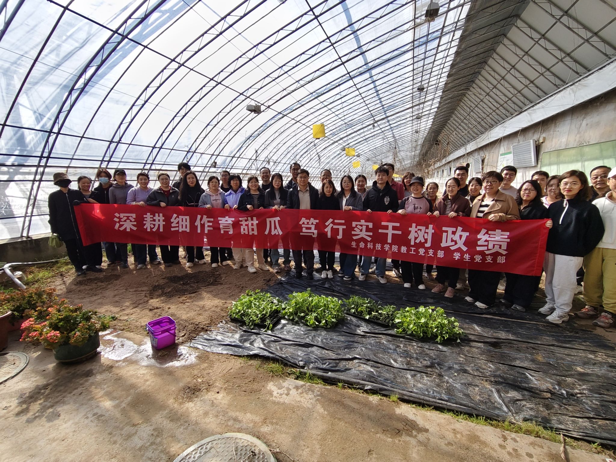 经过一下午的辛勤劳作,原本平整的土地上整齐地矗立起一排排翠绿的甜瓜苗,在春日的阳光下焕发着勃勃生机。这片“党员责任田”里种下的不仅是甜瓜,更是全体师生党员对“笃行实干”精神的践行。